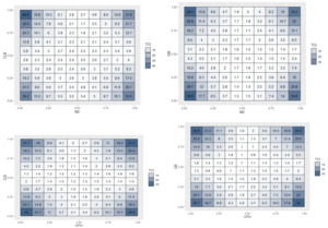 Figure 1 illustrates the average dynamic connectedness among CLE, GB, and climate risk factors. Stronger bidirectional links occur at inversely related quantiles, particularly between natural disasters and clean energy, with the highest TCI at the 5% ND and 95% CLE quantiles. GB shows similar patterns, while middle quantiles exhibit low connectedness. In the U.S., climate risks and green assets are more interconnected under extreme market conditions, reflecting time-varying, condition-dependent spillovers, consistent with Pham & Nguyen (2022).